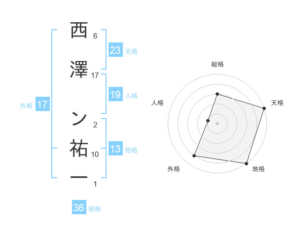 西澤 ン祐一さんを姓名の画数から五運を鑑定