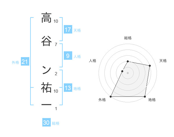 高谷 ン祐一さんの天格は17画の4点!