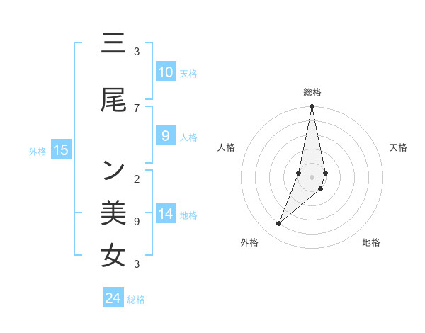 三尾 ン美女さんを姓名の画数から五運を鑑定