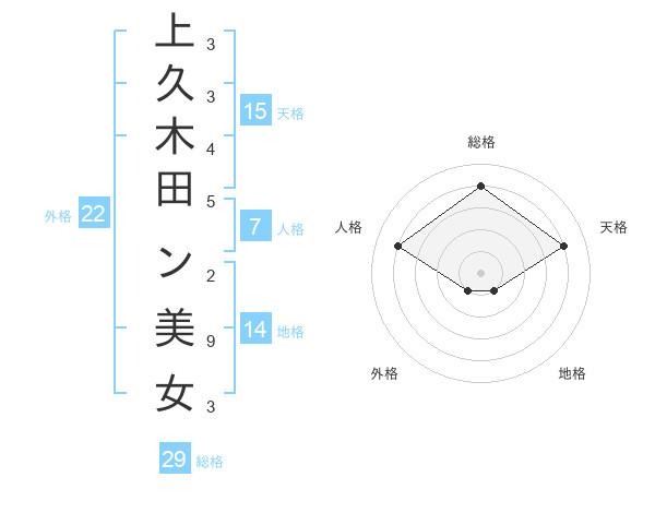 上久木田 ン美女さんを姓名の画数から五運を鑑定