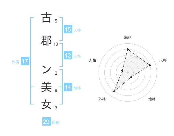 古郡 ン美女さんを姓名の画数から五運を鑑定