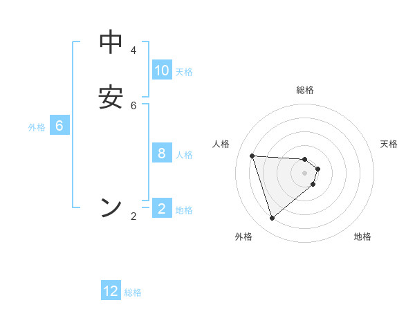 中安 ンさんの総格は12画の1点!