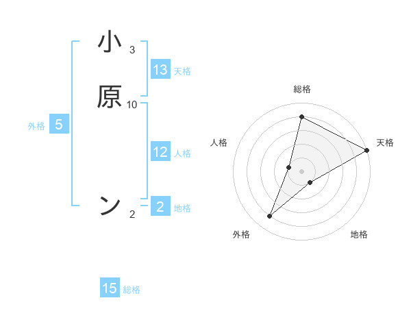 小原 ンさんの総格は15画の4点!