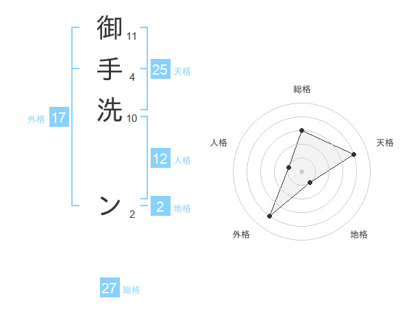 御手洗 ンさんの天格は25画の4点!
