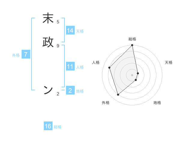 末政 ンさんの総格は16画の5点!