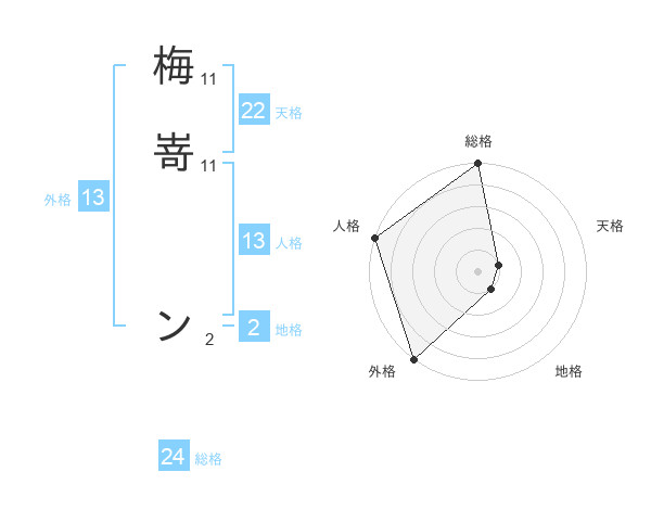 梅嵜 ンさんを姓名の画数から五運を鑑定
