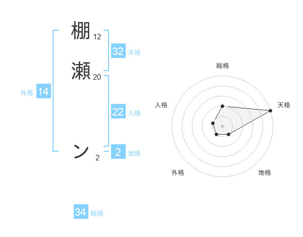 棚瀬 ンさんを姓名の画数から五運を鑑定