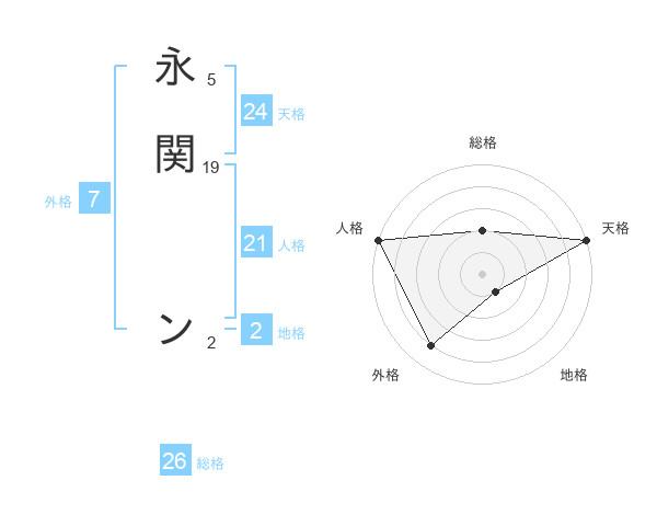 永関 ンさんの総格は26画の2点!