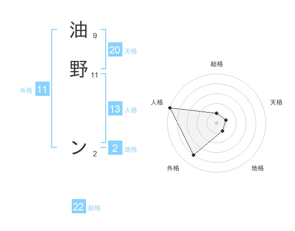 油野 ンさんの総格は22画の1点!