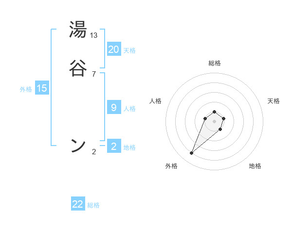 湯谷 ンさんの総格は22画の1点!