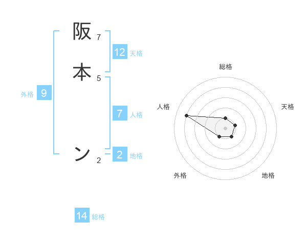 阪本 ンさんの総格は14画の1点!