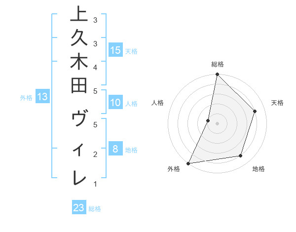 上久木田 ヴィレさんを姓名の画数から五運を鑑定