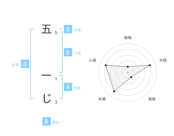 五 ーじさんの総格は9画の1点!