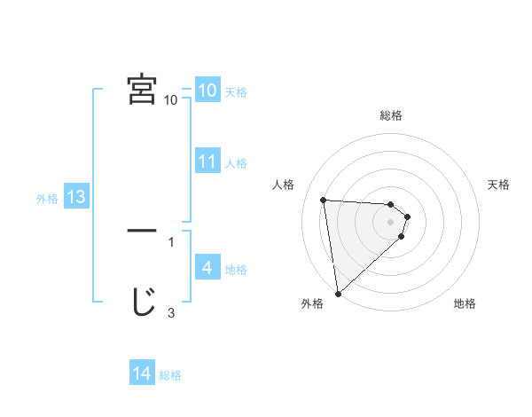 宮 ーじさんの総格は14画の1点!