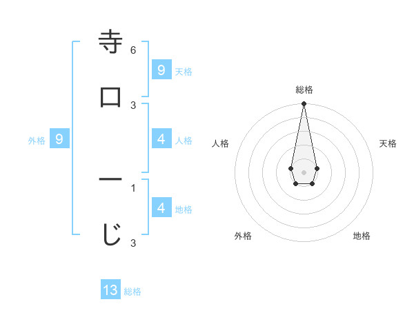 寺口 ーじさんの総格は13画の5点!