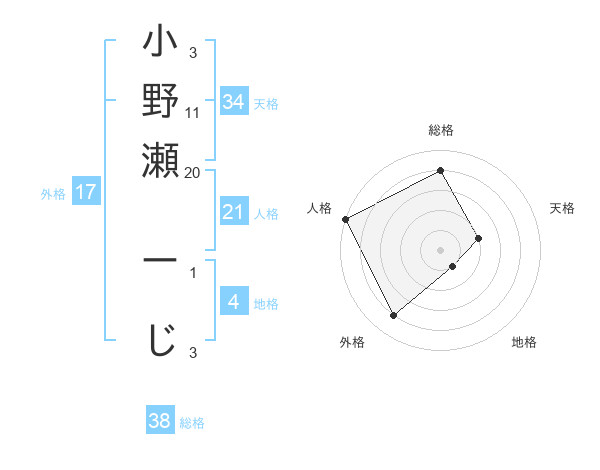 小野瀬 ーじさんを姓名の画数から五運を鑑定