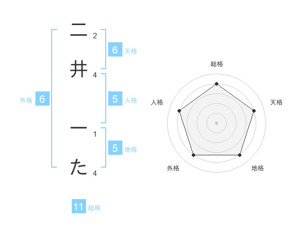 二井 ーたさんの天格は6画の4点!