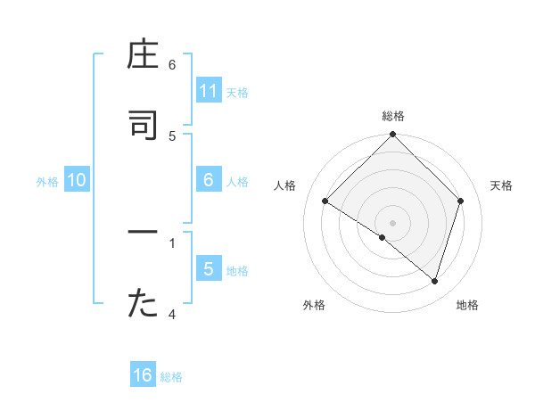 庄司 ーたさんを姓名の画数から五運を鑑定