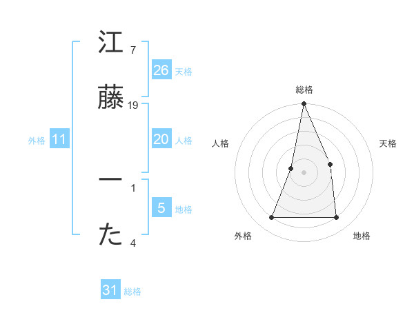 江藤 ーたさんを姓名の画数から五運を鑑定