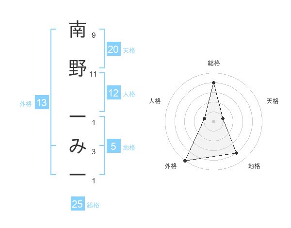 南野 ーみーさんの外格は13画の5点!