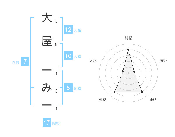 大屋 ーみーさんの総格は17画の4点!