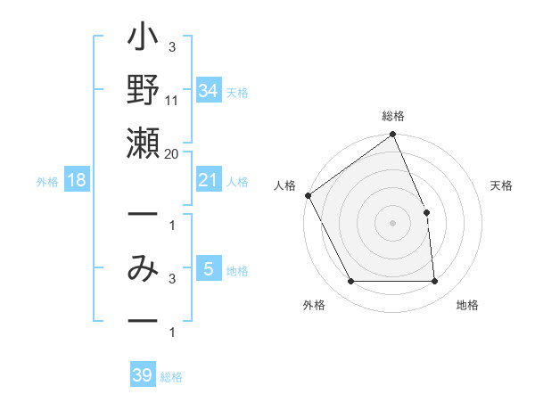 小野瀬 ーみーさんを姓名の画数から五運を鑑定