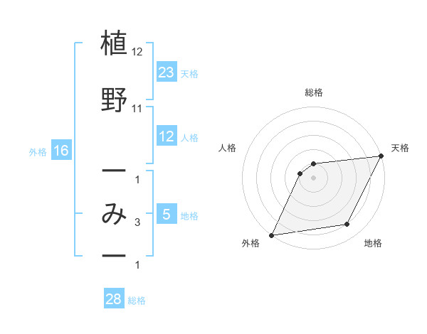 植野 ーみーさんの天格は23画の5点!