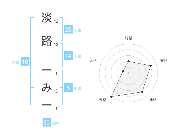 淡路 ーみーさんの総格は30画の2点!
