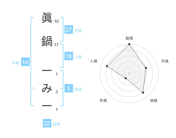 眞鍋 ーみーさんを姓名の画数から五運を鑑定