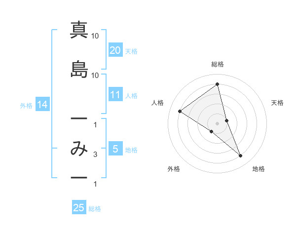 真島 ーみーさんを姓名の画数から五運を鑑定