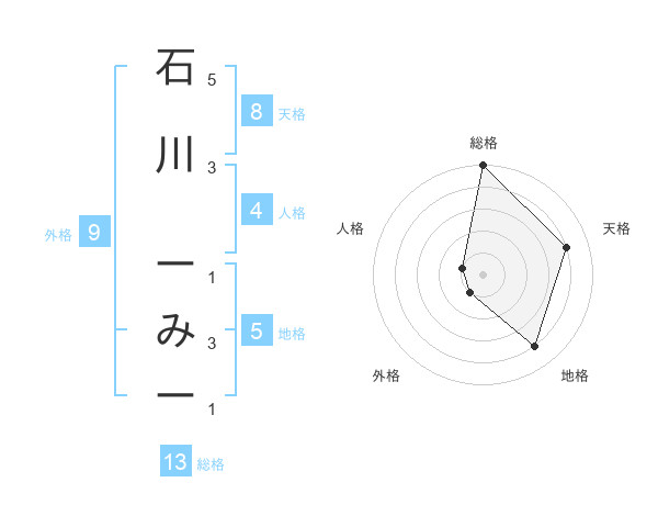 石川 ーみーさんを姓名の画数から五運を鑑定