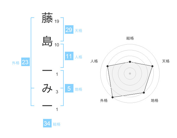 藤島 ーみーさんを姓名の画数から五運を鑑定