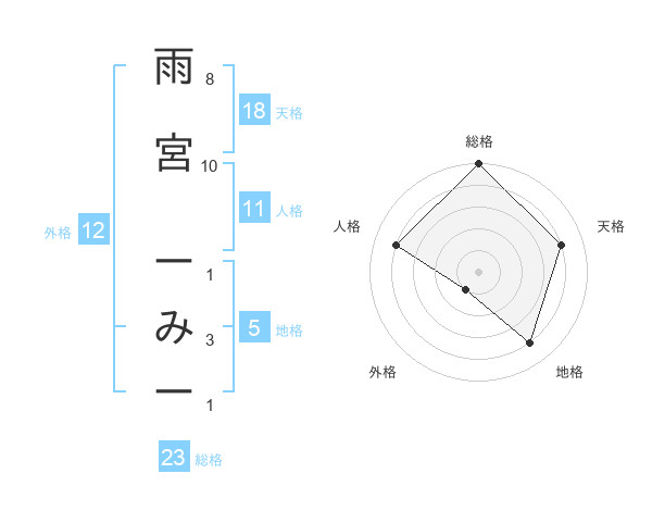 雨宮 ーみーさんを姓名の画数から五運を鑑定