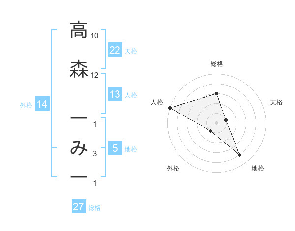 高森 ーみーさんの総格は27画の3点!
