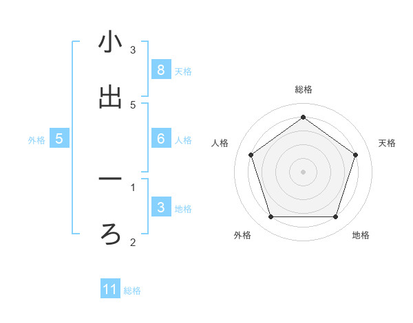小出 ーろさんの外格は5画の4点!