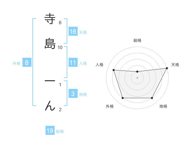 寺島 ーんさんを姓名の画数から五運を鑑定
