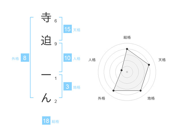 寺迫 ーんさんの天格は15画の4点!