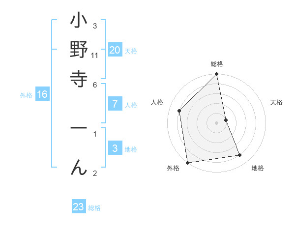 小野寺 ーんさんの天格は20画の1点!