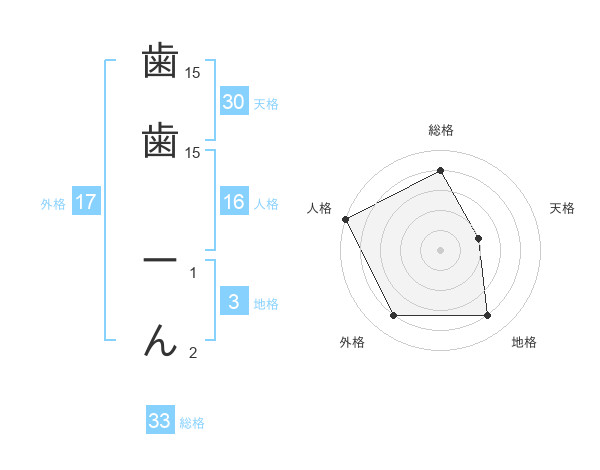 歯歯 ーんさんを姓名の画数から五運を鑑定