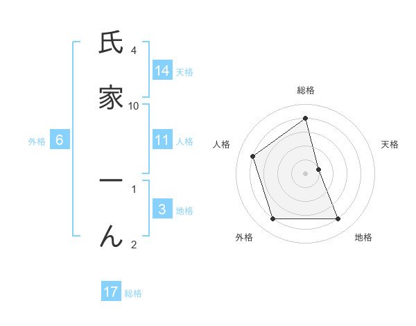氏家 ーんさんを姓名の画数から五運を鑑定