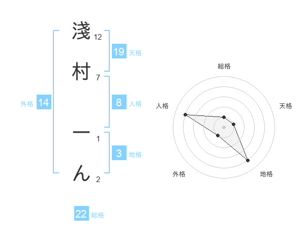 淺村 ーんさんを姓名の画数から五運を鑑定