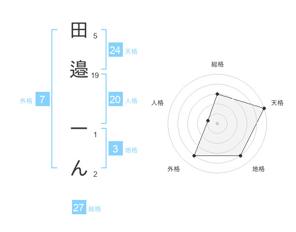 田邉 ーんさんを姓名の画数から五運を鑑定