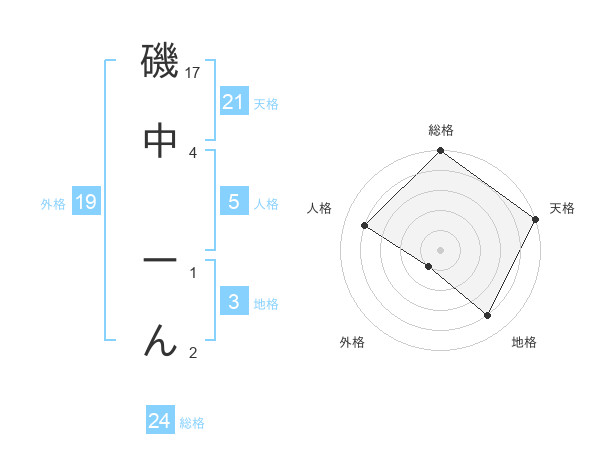 磯中 ーんさんの天格は21画の5点!