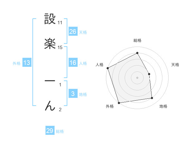 設楽 ーんさんを姓名の画数から五運を鑑定