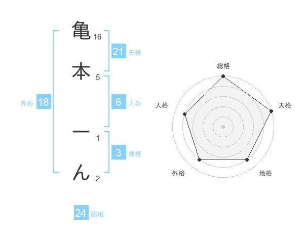 亀本 ーんさんを姓名の画数から五運を鑑定