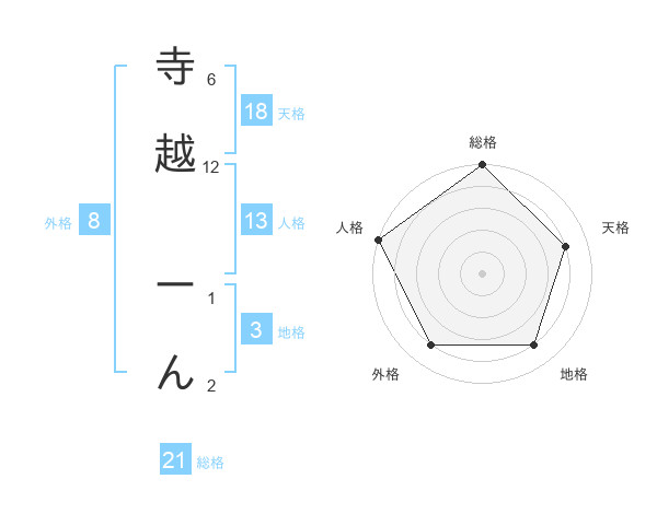 寺越 ーんさんを姓名の画数から五運を鑑定