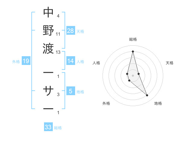 中野渡 ーサーさんを姓名の画数から五運を鑑定