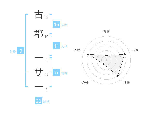古郡 ーサーさんを姓名の画数から五運を鑑定