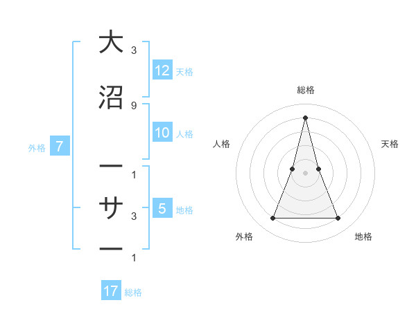 大沼 ーサーさんを姓名の画数から五運を鑑定
