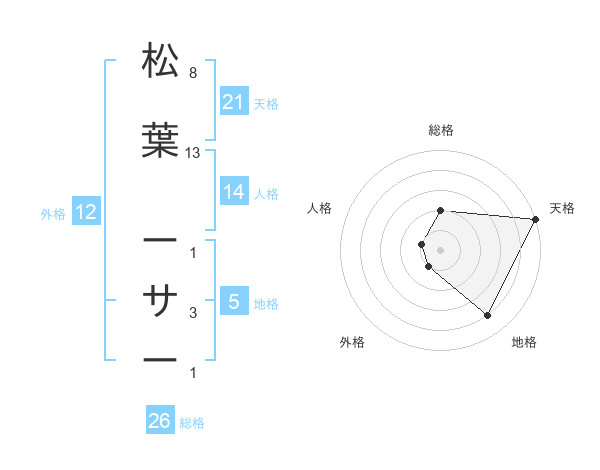 松葉 ーサーさんを姓名の画数から五運を鑑定
